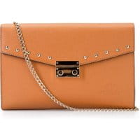 Wieczorowa torebka z nitamiz kolekcji ElegancePrezentowana kopertówka ze skóry licowej to propozycja dla zwolenniczek klasycznych dodatków z interesującymi detalami. Ponadczasowy model zyskał nieco na rockowym klimacie za sprawą metalowych elementów (m.in. zapięcia o lustrzanym połysku i odpinanego,łańcuszka). Pudełkowy, sztywny model posiada trójkątną klapę, którą dodatkowo okraszono rzędem nitów.Nasza rada: wybieraj spośród czterech nieprzemijających odcieni: czerni, granatu, szarości i pomarańczowego. wykonana ze skóry licowej; całość przykryta klapą zamykaną na metalowe zapięcie; wewnątrz otwarta kieszeń na drobiazgi; do torebki dołączony jest odpinany pasek w formie łańcuszka.