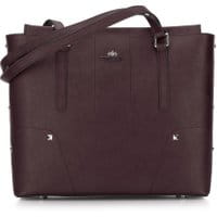 Torebka z ćwiekami z kolekcji EleganceSztywna torebka damska wykonana z doskonałej jakości skóry licowej o fakturze typu saffiano. Klasyczny fason zdobią przeszycia oraz ćwieki, które nadają modelowi rockowy klimat. Model z długimi uchwytami przeznaczony jest do noszenia na ramieniu. Shopper występuje w trzech odcieniach: czarnym, czerwonym oraz fioletowym.Nasza rada: skóra saffiano to kwintesencja nowoczesnej mody damskiej. zamykana na suwak; wykonana ze skóry licowej; komora główna przedzielona kieszenią zamykaną na suwak; wewnątrz dwie kieszenie zamykane na suwak, otwarta kieszeń na drobiazgi oraz miejsce na telefon komórkowy; pomieści format A4; podstawa zabezpieczona metalowymi nóżkami.