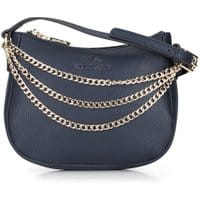 Mała torebka z kolekcji EleganceListonoszka o subtelnym kształcie uszyta z naturalnej skóry o lekko groszkowanej fakturze. Przód torebki z wyeksponowanym, tłoczonym logo WITTCHEN urozmaicają trzy luźno umocowane złote łańcuchy w rockowym klimacie. Wyraziste akcesorium występuje w trzech odmiennych barwach: czerwonym, granatowym oraz czarnym.Nasza rada: propozycja dla amatorek glam rockowego stylu. wykonana ze skóry licowej; zamykana na suwak; wewnątrz kieszeń zamykana na suwak oraz otwarta kieszeń na drobiazgi; możliwość regulacji długości paska.