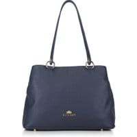 Granatowa torebka z kolekcji EleganceKlasyczna torebka damskato doskonały sposób na wykończenie modego wizerunku. Akcenty w postaci kółek zestawione z groszkowanąskórą naturalnąsprawiają, że fason torebki prezentuje się nonszalancko i niezwykle stylowo.Nasza rada:dokładnie to czego potrzebujesz na zbliżający się sezon. zabezpieczona paskiem zapinanym na magnetyczne zapięcie; komora główna przedzielona kieszenią zamykaną na suwak; wewnątrz dwie kieszenie zamykane na suwak, otwarta kieszeń na drobiazgi oraz miejsce na telefon komórkowy; z tyłu kieszeń zamykana na suwak; do torebki dołączony jest odpinany, regulowany pasek; podstawa zabezpieczona metalowymi nóżkami.