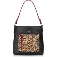 Czarna torebka hobo bag z kolekcji EleganceKlasyczny fason i nietuzinkowa stylistka ozdobników z wyrazistym akcentem zwierzęcym zachwyci wszystkie panie, które lubią się wyróżniać. Czerwone wstawki, złote detale, wyraziście groszkowana skóra licowa, a do tego ozdobna kieszeń z wykończeniem z włosia z motywem lamparcich cętków, składają się na niezwykle oryginalną całość. Nasza rada:do odważnych świat należy! wykonana ze skóry naturalnej; zamykana na suwak; wewnątrz kieszeń zamykana na suwak oraz otwarta kieszeń; z tyłu kieszeń zamykana na suwak; z przodu kieszeń zamykana na suwak; podstawa zabezpieczona metalowymi nóżkami.
