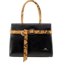 Torebka typu kuferek z kolekcjiEleganceNowoczesna torebka damska typu kuferek wykonana z wysokiej jakości skóry naturalnej. W projekcie wzrok przyciągają elementy, które są w odmiennym kolorze niż korpus. Model urozmaicają: rączki, regulowany pasek oraz ozdobny pas z motywem skóry węża. Złote detale nadają kuferkowi więcej szyku. Akcesorium do nabycia w granatowej oraz czarno-żółtej wersji kolorystycznej.Nasza rada: wężowe wzory to hit tego sezonu! wykonana ze skóry licowej; zamykana na suwak; komora główna przedzielona kieszenią zamykaną na suwak; wewnątrz kieszeń zamykana na suwak, otwarta kieszeń na drobiazgi oraz miejsce na telefon komórkowy; z tyłu kieszeń zamykana na suwak; do torebki dołączony jest odpinany, regulowany pasek; podstawa zabezpieczona metalowymi nóżkami.