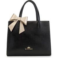 Zgrabny kuferek z kolekcji EleganceCzarno-złota torebkawygląda odświętnie, za sprawą mocno groszkowanej skóry licowej z połyskiem, metalowym elementom i odpinanej ozdobie w formie skórzanejkokardki. To nie znaczy, że model nie sprawdzi się w codziennych sytuacjach. Wystarczy odpiąć ozdobę i przyczepić długi pasek, a torebka od razu nabierze mniej formalego charakteru.Nasza rada: złota kokardadoda każdej torebce dziewczęcego uroku. wykonana ze skóry naturalnej; zamykana na magnetyczne zapięcia; komora główna przedzielona kieszenią zamykaną na suwak; wewnątrz kieszeń zamykane na suwak, otwarta kieszeń na drobiazgi oraz miejsce na telefon komórkowy; z tyłu kieszeń zamykana na suwak; do torebki jest dołączony odpinany, regulowany pasek; podstawa zabezpieczona metalowymi nóżkami.