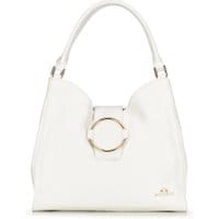Torebka z kółkiem z kolekcji EleganceModna torebka damskaz dekoracyjnym zapięciem na pasek o metalowej obręczy występuje białym odcieniu.Groszkowana skóralicowa o groszkowanej strukturze nowocześnie wygląda w towarzystkie ze złotymi elementami. Ciekawa budowa torebki to kolejny atut nie tylko estetyczny, lecz także funkcjonalny. Inspirowananajnowszymi trendami w modzie.Nasza rada: torebka jednolita pod względem barw i faktur prezentuje się elegancko i z klasą. wykonana znajwyższej jakości skóry licowej; całość zabezpieczona paskiem zapinanym na magnetyczne zapięcie; komora główna zamykana na suwak; dwie komory zabezpieczone paskiem zapinanym na magnetyczne zapięcie; wewnątrz kieszeń zamykana na suwak, miejsce na telefon oraz otwarta kieszeń na drobiazgi; z tyłu kieszeń zamykana na suwak; podstawa zabezpieczona metalowymi nóżkami.