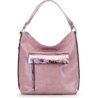 Torebka worek z kolekcjiYoungDużej wielkości torebka damska posiada szeroki, wygodny pasek do przenoszenia. Dodatek jest dostępny w dwóch wersjach kolorystycznych (różowym oraz granatowym). Przód torebki jest urozmaicony błyszczącą klapą, która osłania kieszeń. Z tyłu model również został wyposażony w kieszeń zamykaną na suwak.Nasza rada: pojemny i praktyczny fason typu hobo bag to jedna z najmodniejszych torebek sezonu. wykonana ze skóry ekologicznej; komora główna zamykana na suwak; wewnątrz kieszeń zamykana na suwak, otwarta kieszeń na drobiazgi oraz miejsce na telefon komórkowy; pomieści format A4; z przodu kieszeń zamykana na suwak; z tyłu kieszeń zamykana na suwak.