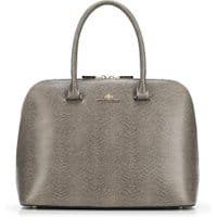 Torebka typu kuferek z kolekcji EleganceWyjątkowo efektowny kuferek damski wykonany z naturalnej skóry przypominającej skórę jaszczurki. Subtelnie zaokrąglony model o charakterze retrozyskuje jeszcze bardziej stylowy wygląd za sprawą metalowych elementów w odcieniu żółtego złota. Model dostępny jest w trzech kolorach: granatowym, bordowym i czarnym.Nasza rada: połączenie kuferka i zwierzęcego motywu daje ekstrawagancki efekt doskonały dla śmiałej businesswoman lub eleganckiej fashionistki. zamykana na suwak; komora główna przedzielona kieszenią zamykaną na suwak; otwarta kieszeń na drobiazgi; 2 kieszenie wewnętrzne zabezpieczone suwakiem; miejsce na telefon komórkowy; podstawa zabezpieczona metalowymi nóżkami.