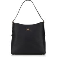 Czarna torebka z kolekcji Elegance Damska torebkao trapezowym kształcie wykonana z naturalnej skóry z efektem groszkowania. Szeroki, regulowany pasek umożliwia swobodne noszenie torebki na ramieniu. Charakter akcesorium ciekawie podkreślają złotedetale, w tym sprzączki.Nasza rada:wygodna torebka typu hobo bag to doskonałe uzupełnienie strojów w casualowym stylu. zamykana na suwak; otwarta kieszeń na drobiazgi; 2 kieszenie wewnętrzne zabezpieczone suwakiem; miejsce na telefon komórkowy; możliwość regulacji długości paska; podstawa zabezpieczona metalowymi nóżkami.
