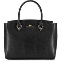 Skórzany kuferek z kolekcji Elegance Torebka damskaz połyskliwej skóry licowej, zdobnej w motyw zwierzęcy to elegancki dodatek z nutą ekstrawagancji. Złote okucia dodatkowo podkręcają szykowny blichtr i orginalny efekt całości. Model dostępny jest w trzech ciemnych odcieniach: granatowym, czarnym orazbordowym.Nasza rada: ta charakterystyczna torebka nie potrzebuje konkurencji, więc nie przesadzaj z dodatkowymi ozdobami. zamykana na suwak; wewnątrz otwarta kieszeń na drobiazgi, miejsce na telefon komórkowy oraz dwie kieszenie zamykane na suwak; do torebki dołączony jest odpinany, regulowany pasek; podstawa zabezpieczona metalowymi nóżkami.