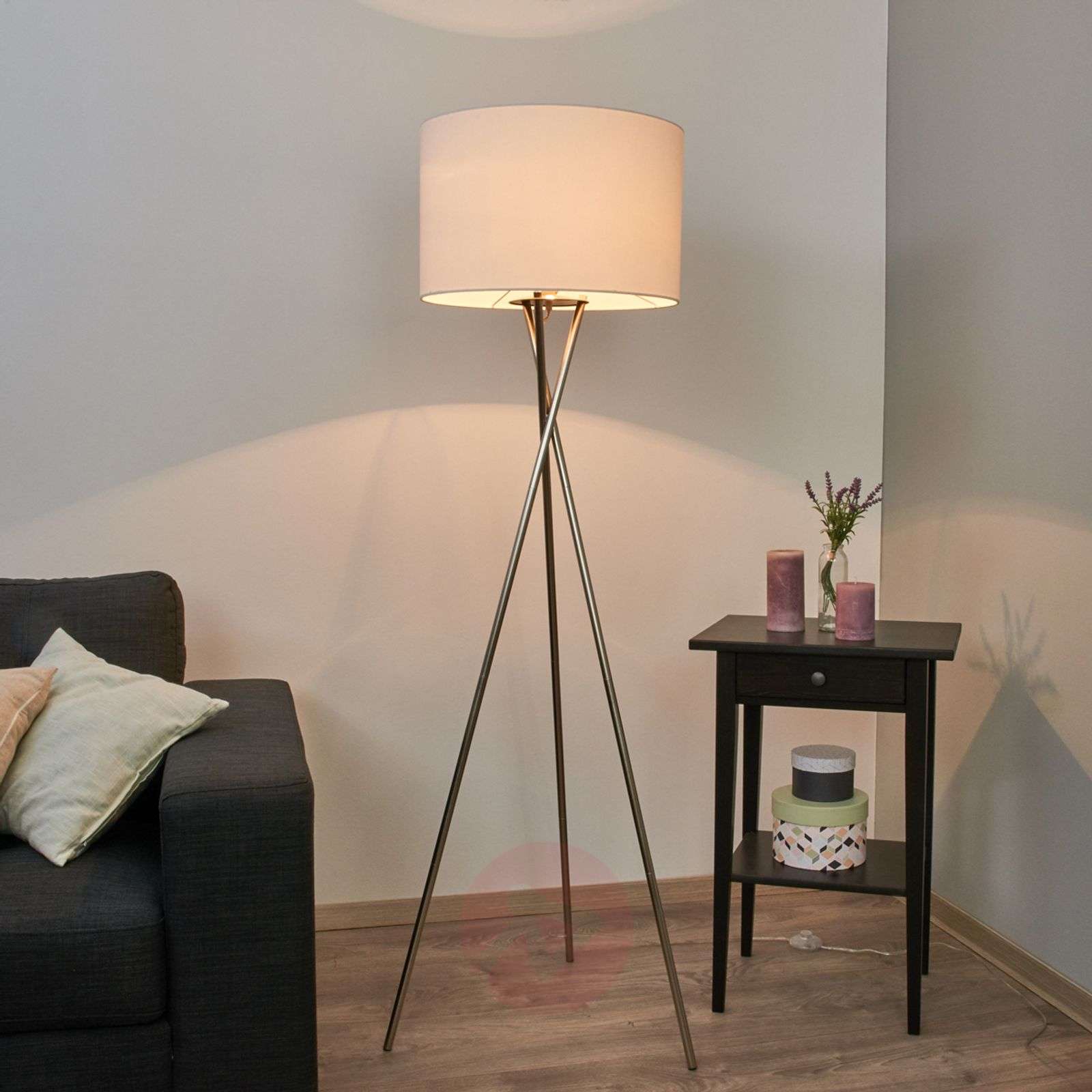 Biała lampa stojąca Fiby na krzyżakowym trójnogu z cylindrycznym kloszem tekstylnym Lampy stojące z materiału są od dawna nieodłącznym elementem oświetlenia salonu, ponieważ emitują przyjemne światło. Wprawdzie przez lata zmieniały się ich kształty i materiał, ale podstawowy wygląd i przytulna aura, jaką tworzą wokół siebie, pozostały jednak niezmienione. Lampa Fiby wyposażona jest w biały klosz o prostym, cylindrycznym kształcie, połączonym z trójnożnym stelażem z ciekawie skrzyżowanymi prętami. Przewód zasilający ze zintegrowanym przełącznikiem nożnym ma długość 180 cm. Klasa efektywności energetycznej: A++