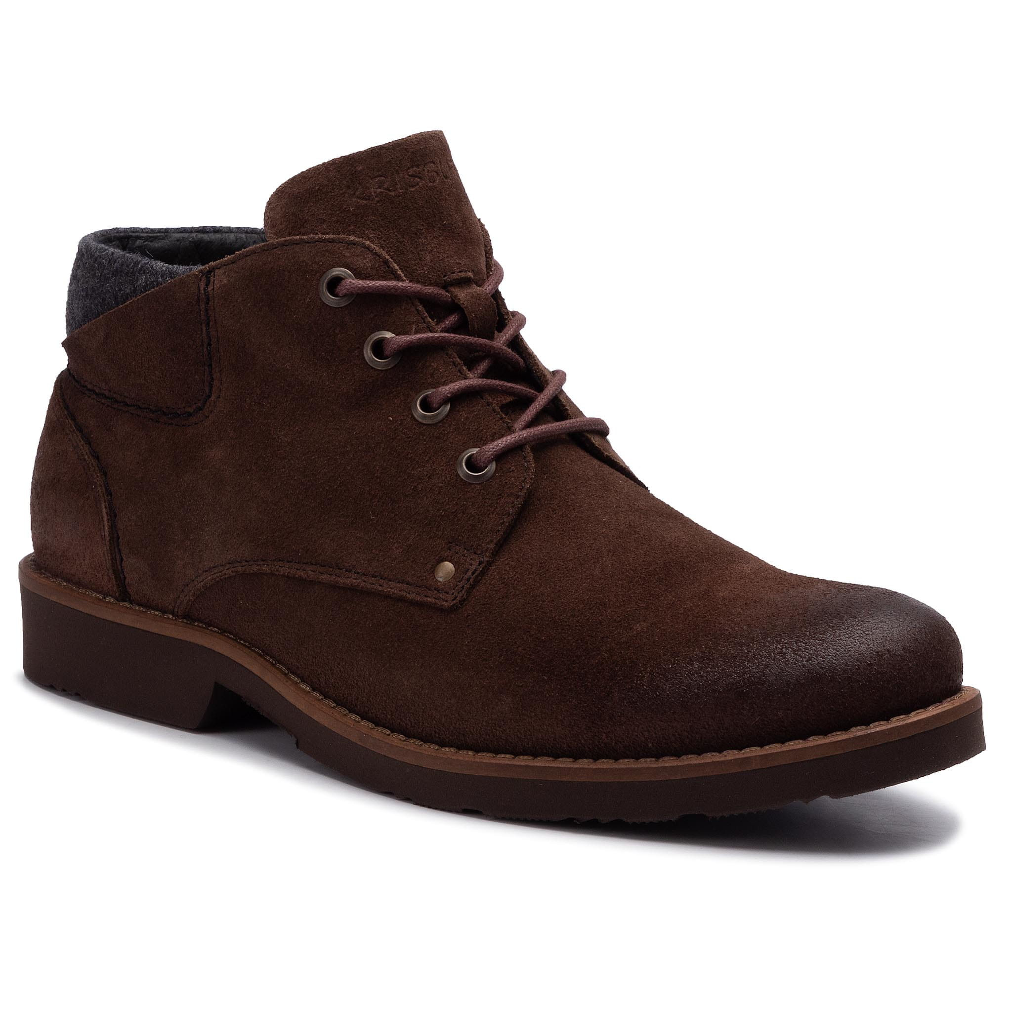 Zgrabne trzewiki firmy Krisbut. Wierzchnią część butów tworzy Skóra naturalna - Zamsz, Materiał - Filc. Trzewiki posiadają wyściółkę, to ocieplenie, polar, skóra. Komfort noszenia podnosi wkładka: ocieplenie, polar. Podeszwa izolująca, to wysokogatunkowe tworzywo. Utrzymane w miejskim stylu, sprawdzają się na co dzień.