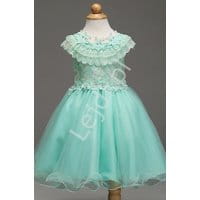 Turkusowa sukienka w stylu retro z koronkowym kołnierzykiem dla dziewczynki.