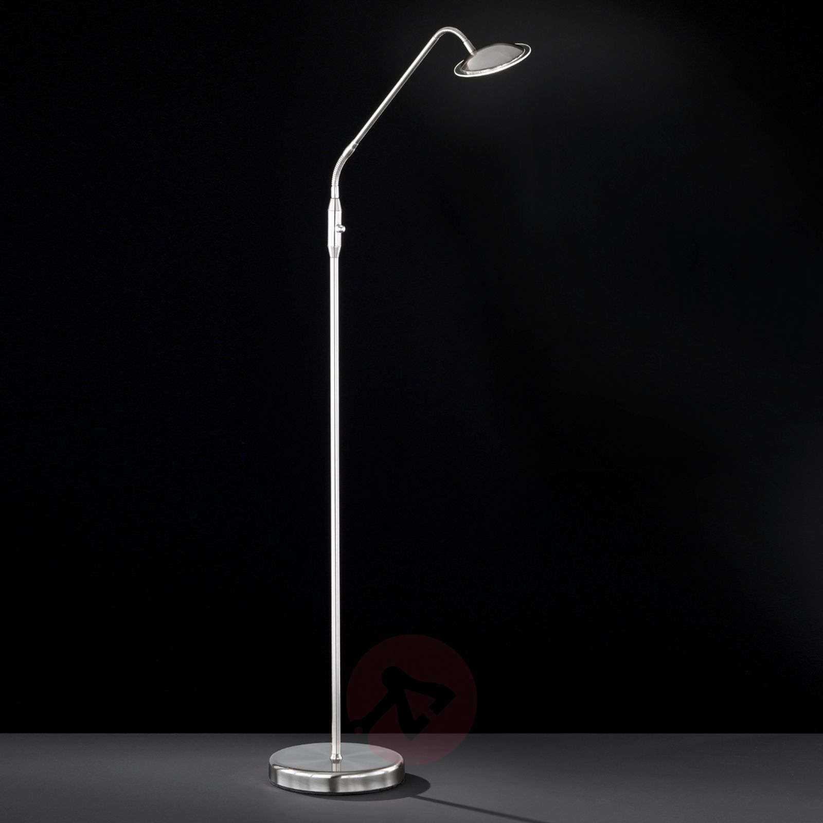Zaprojektowana z wdziękiem lampa stojąca LED Twin z matowego niklu - źródło światło o wszechstronnym zastosowaniu Lampa stojąca LED Twin z funkcją ściemniania wznosi się strzeliście w górę pomieszczenia, a ze względu na swój subtelny design pasuje do różnych stylów wystroju wnętrz mieszkalnych. Zapewnia światło LED o barwie ciepłej bieli, tworząc nastrojową atmosferę, np. przy komplecie wypoczynkowym. Wyposażona w przełącznik. Klasa efektywności energetycznej: A+