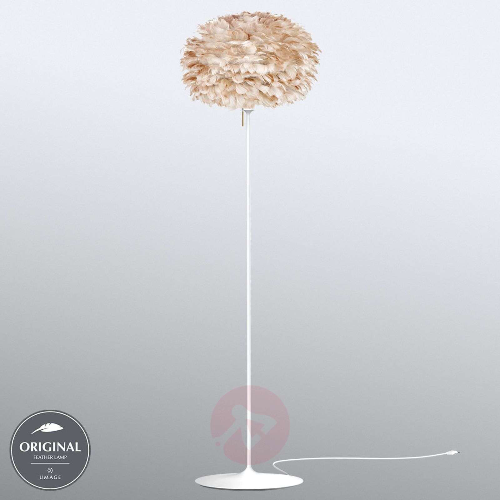 Tę lampę stojącą Eos medium zdobi jasnobrązowy klosz z piór W tej lampie stojącej Eos medium mamy do czynienia ze szczególnego rodzaju symbiozą. Stanowi ona bowiem połączenie niezwykłego klosza z piór, autorstwa designera, Sørena Ravna Christensena, oraz pięknego, ponadczasowego statywu podłogowego Champagne, zaprojektowanego przez Andersa Klema: Prostota białej podstawy w żaden sposób nie odwraca uwagi widza od ekstrawaganckiego wyglądu klosza. Klosz składa się z około 1 800 jasnobrązowych gęsich piór, które przyklejono do papierowej podstawy, co sprawia, że światło wydostające się z lampy jest wyjątkowo miękkie. Lampa stojąca Eos jest załączane za pomocą eleganckiego mosiężnego przełącznika, który znajduje się na podstawie pod oprawą i stanowi dodatkowe wyposażenie dekoracyjne. Lampa stojąca, która doskonale wpisuje się w portfolio produktów duńskiej firmy oświetleniowej UMAGE, której założeniem dla procesu produkcji opraw jest dalszy rozwój skandynawskiego wzornictwa. - Jeśli klosz jest zabrudzony, po prostu usuwamy kurz suszarką do włosów. - Nie użyto tu piór żywych zwierząt. Klasa efektywności energetycznej: A++