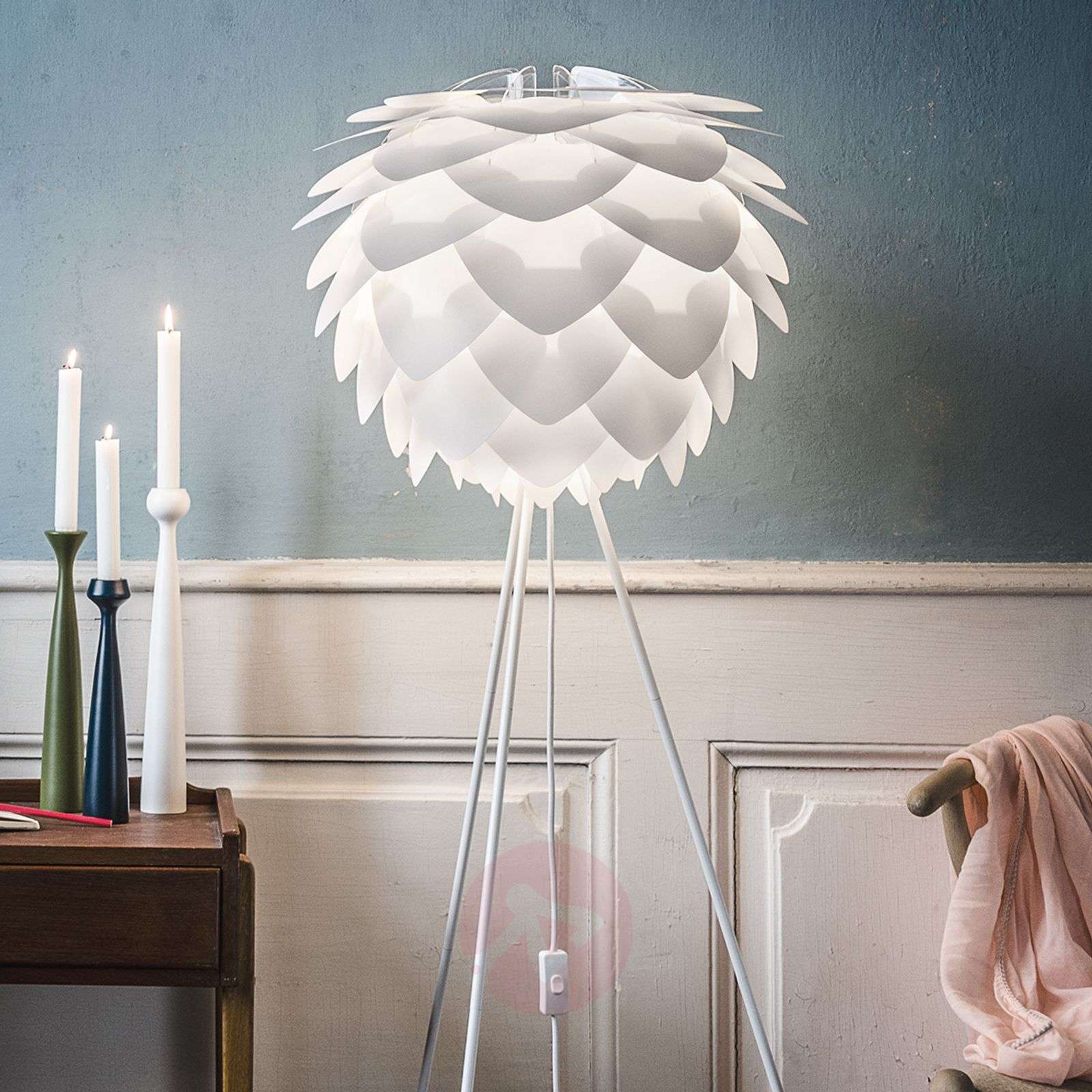 Designerska lampa stojąca Silvia medium – cała w kolorze białym Lampa stojąca Silvia medium to bardzo dekoracyjne połączenie, które współgra z niemal każdym wystrojem wnętrza. Klosz – projekt designerski autorstwa zespołu Vita Design – znajduje się na trójnożnym statywie stworzonym przez Sørena Ravna Christensena, twórcę i współzałożyciela duńskiej firmy oświetleniowej UMAGE. MDyskretna prostota białej, lakierowanej aluminiowej podstawy kontrastuje uderzająco z wyglądem klosza. Klosz jest również wykonany z białych plastikowych części i ma wygląd kwiatu z krajów południowych, gdyż posiada trójkątne, zachodzące na siebie płatki. Gdy światło jest włączone, lampa zapewnia w salonie oświetlenie akcentujące. Wyposażona w przełącznik na kablu i kabel w osłonie tekstylnej o długości 300 cm. Producent opraw, firma UMAGE, wyróżnia się swoimi kreacjami oświetleniowymi. Tworząc je, ma na celu dalszy rozwój skandynawskiego designu o czystym pięknie i wysokiej funkcjonalności. Klasa efektywności energetycznej: A++