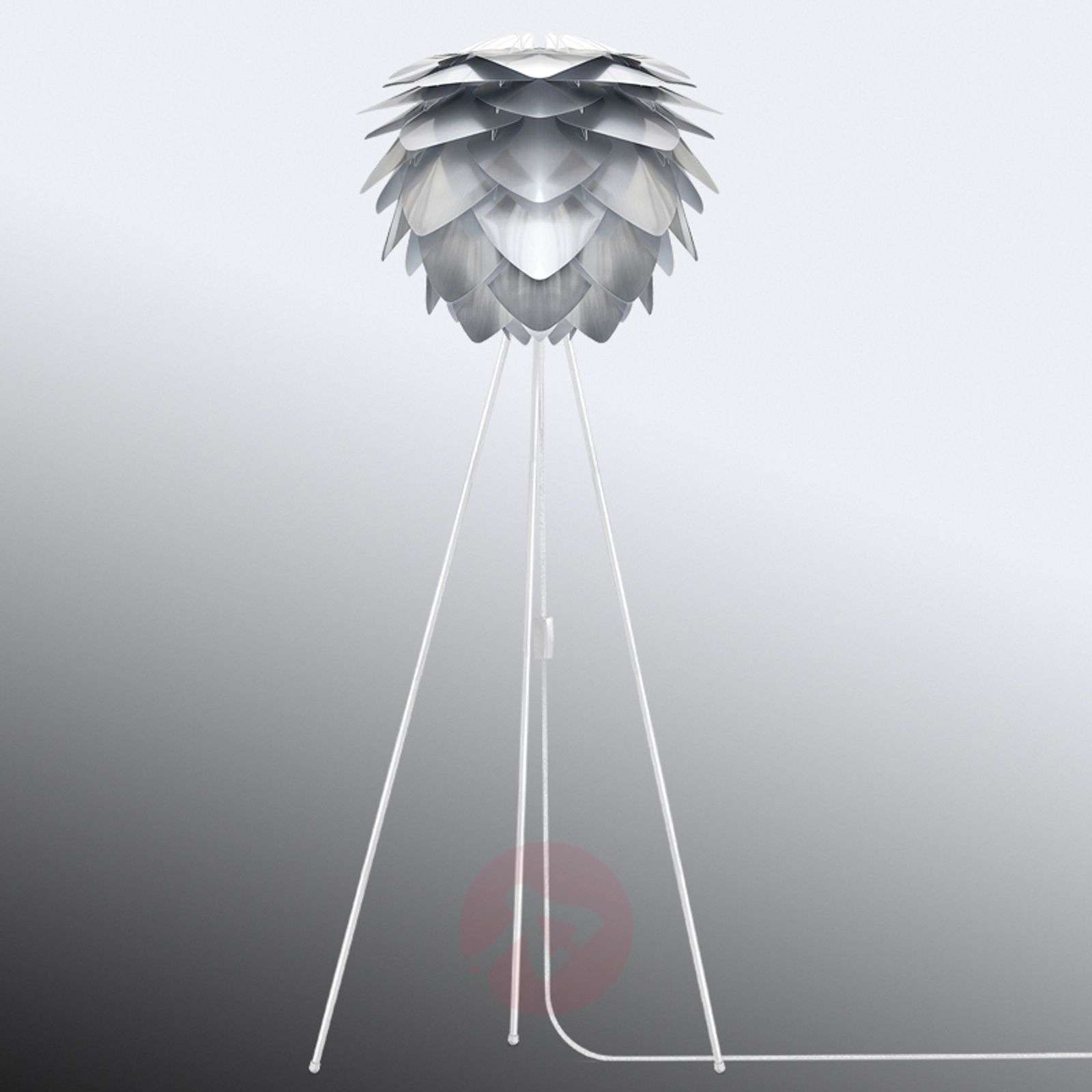 Lampa stojąca Silvia medium z trójnożnym statywem podłogowym i kloszem o stalowej barwie Lampa stojąca Silvia medium roztacza wokół czar egzotyki. Klosz lampy stworzono z trójkątnych płatków, wykonanych z nietłukącego się plastiku. Nakładające się na siebie mocowanie liści sprawia wrażenie, że wydaje Ci się, że masz przed sobą piękną roślinę. Konstrukcja klosza sprawia, że lampa wytwarza bardzo nastrojowe światło, wydostające się w górę i w dół, jak również przez przestrzenie pomiędzy elementami. Klosz z wykończeniem ze szczotkowanej stali jest dziełem zespołu projektowego Vita Design, a łatwa w montażu trójnożna podstawa została zaprojektowana przez duńskiego designera Sørena Ravna Christensena. Pod oprawką na żarówkę na środku znajduje się przewód zasilający o długości 300 cm z wbudowanym przełącznikiem, co czyni go ważnym elementem konstrukcji optycznej. Silvia medium – lampa stojąca, której nie można nic zarzucić pod względem funkcjonalności i wzornictwa, oraz przykład różnorodności designów opraw duńskiej firmy UMAGE, która koncentruje się na dalszym rozwoju skandynawskiego wzornictwa. Klasa efektywności energetycznej: A++