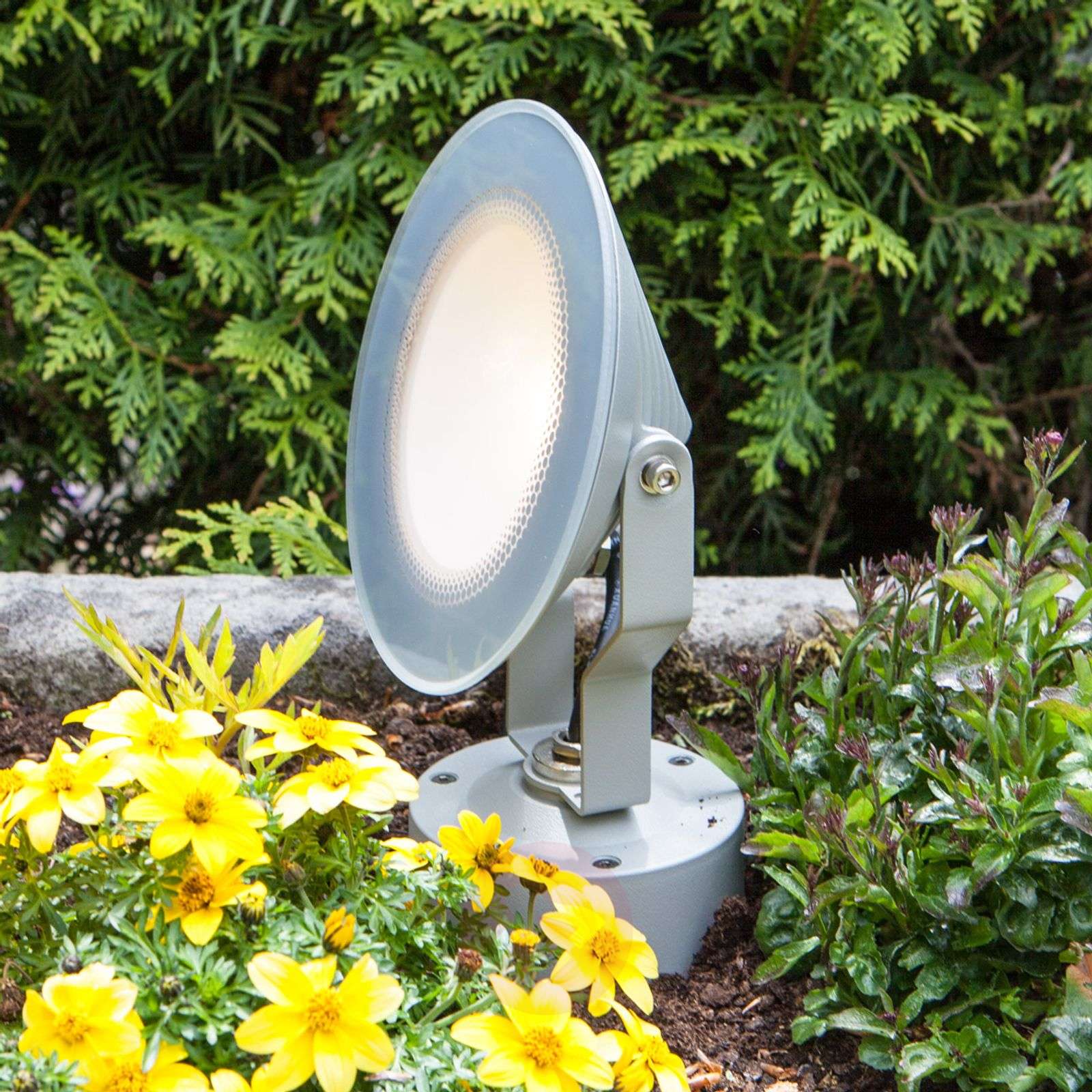 Energooszczędna lampa zewnętrzna SKADE dla oświetlenia w kolorze ciepłej bieli Lampa zewnętrzna SKADE jest zaprojektowana w taki sposób, aby zapewnić odpowiednie oświetlenie w ciemności w obszarze domu lub na powierzchniach komercyjnych. Składa się ona z aluminiowej obudowy i szklanego dyfuzora. Można ją zamontować na ścianie lub przytwierdzić do łóżka lub do podłoża za pomocą dołączonego do zestawu grota ziemnego. Aby optymalnie ustawić ciepłobiałe oświetlenie, lampę SKADE można odchylać i obracać, co pozwoli jej perfekcyjnie oświetlać wybrane obszary. Nowoczesna technologia LED zapewnia niski pobór mocy i długą żywotność. Żarówki w zestawie. Klasa efektywności energetycznej: A+