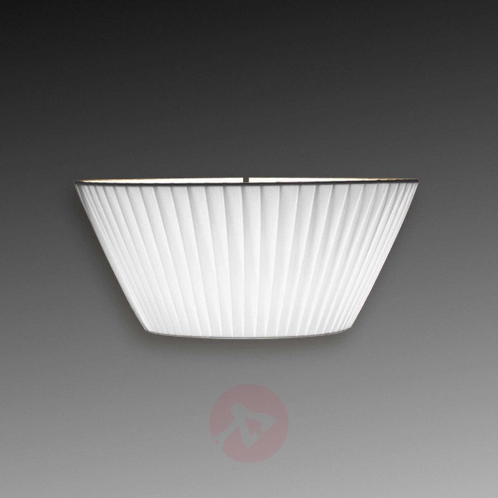 Stylowa lampa ścienna Emma z abażurem z plisowanej tkaniny, dostępna w 5 kolorach Lampa ścienna Emma jest źródłem wyjątkowo nastrojowego i zrównoważonego oświetlenia, które uszlachetnia abażur. Ciekawa tkanina abażuru została kunsztownie ułożona w fałdy, dlatego posiada drobno pofałdowaną, stylową powierzchnię. Bez względu na oświetlane miejsce lampa ścienna Emma urzeka zrównoważonym i bardzo ciepłym światłem. Efekt świetlny tworzony przez lampę Emma różni się w zależności od wybranego koloru, dlatego można go indywidualnie kształtować. Lampa ścienna jest dostępna z abażurem w kolorze beżowym, pomarańczowym, czerwonym, białym i bordo. Klasa efektywności energetycznej: A++
