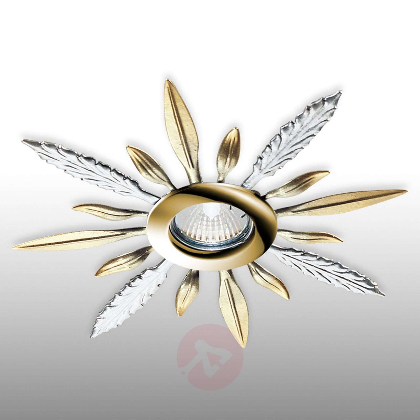 Wysokonapięciowa lampa wpuszczana FELLO z ozdobnymi metalowymi elementami Lampa wpuszczana FELLO urzeka z jednej strony ciekawym i efektywnym oświetleniem, a z drugiej strony metalowe elementy w kształcie liści na jej obwodzie prezentują się wyjątkowo dekoracyjnie. Wygląd. Lampa nadaje wnętrzom jednoznaczne akcenty i może oświetlać najróżniejsze pomieszczenia. Lampa FELLO jest dostępna w trzy kolorach: złotym, białym i chromowym. Klasa efektywności energetycznej: A++
