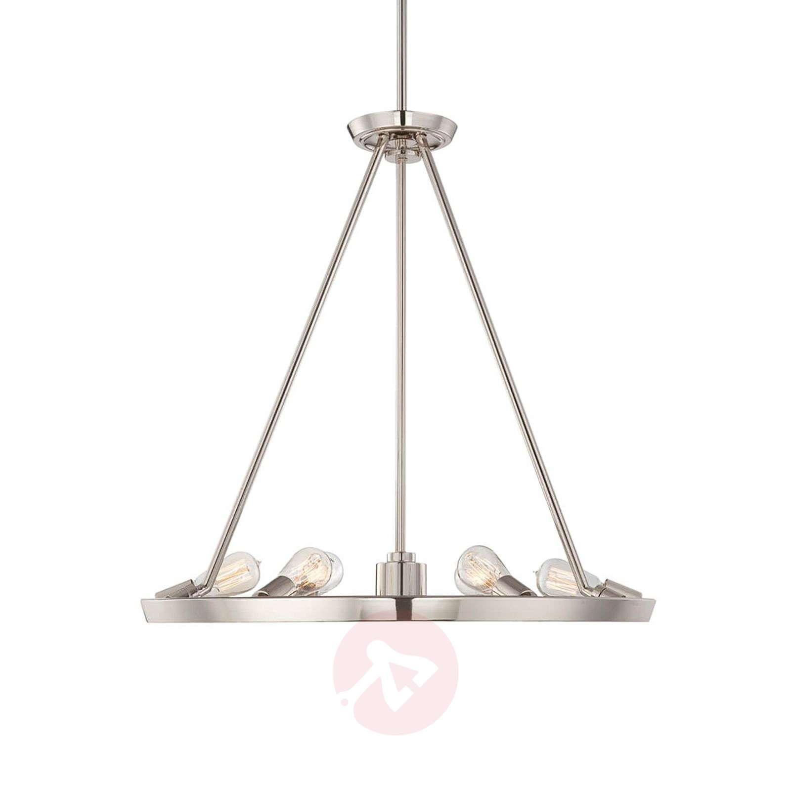 Srebrna lampa wisząca Theater Row w stylu vintage Lampa wisząca Theater Row rzuca się w oczy z wielu względów: ma średnicę 71 cm i nadaje się do zapewniania zarówno oświetlenia ogólnego, jak i powierzchniowego. Wykonana jest w całości z metalu, który został opatrzony bardzo efektownym wykończeniem o nazwie imperial silver. Główną zaletą tej lampy wiszącej jest jednak obecność sześciu opraw, które są równomiernie rozmieszczone po wewnętrznej stronie pierścienia na kloszu i zamocowane lekko ukośnie. Dodatkowo na zawieszeniu zamontowany jest centralny spot GU10, który zapewnia optymalne oświetlenie skierowane w dół, podczas gdy żarówki E27 zapewniają nastrojowe świetlenie otoczenia, którego źródłem jest Theater Row. Żarówki E27 są dostarczane przez producenta, żarówka GU10 jest dostępna jako wyposażenie dodatkowe. Klasa efektywności energetycznej: D
