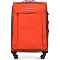 Średniej wielkości walizka z kolekcji Bon Voyage wykonana z poliestru. Posiada cztery kółka oraz podnóżek, utrzymujący stabilność walizki. Ponadto wysuwany uchwyt oraz dwie dodatkowe rączki, wpływające na komfort prowadzonego bagażu. Kontrastowe wstawki zarówno na zewnątrz, jak i wewnątrz walizki urozmaicają jej klasyczny wygląd. Dodatkowo system TSA, bardzo przydatny w przypadku rewizji bagażu przez służby celne. Gwarantuje on bezinwazyjne otwarcie walizki oraz jej ponowne zamknięcie, bez uszkodzenia zamka. Model posiada również suwak umożliwiający powiększenie pojemności walizki. Wewnątrz: komora główna zamykana na suwak z regulowanymi pasami zabezpieczającymi ubrania; kieszeń z siatki zamykana na suwak. Zewnątrz: z przodu kieszeń zamykana na suwak. Podane wymiary obejmują również elementy wystające, takie jak rączki czy kółka.