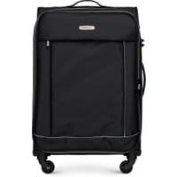 Średniej wielkości walizka z kolekcji Bon Voyage wykonana z poliestru. Posiada cztery kółka oraz podnóżek, utrzymujący stabilność walizki. Ponadto wysuwany uchwyt oraz dwie dodatkowe rączki, wpływające na komfort prowadzonego bagażu. Kontrastowe wstawki zarówno na zewnątrz, jak i wewnątrz walizki urozmaicają jej klasyczny wygląd. Dodatkowo system TSA, bardzo przydatny w przypadku rewizji bagażu przez służby celne. Gwarantuje on bezinwazyjne otwarcie walizki oraz jej ponowne zamknięcie, bez uszkodzenia zamka. Model posiada również suwak umożliwiający powiększenie pojemności walizki. Wewnątrz: komora główna zamykana na suwak z regulowanymi pasami zabezpieczającymi ubrania; kieszeń z siatki zamykana na suwak. Zewnątrz: z przodu kieszeń zamykana na suwak. Podane wymiary obejmują również elementy wystające, takie jak rączki czy kółka.