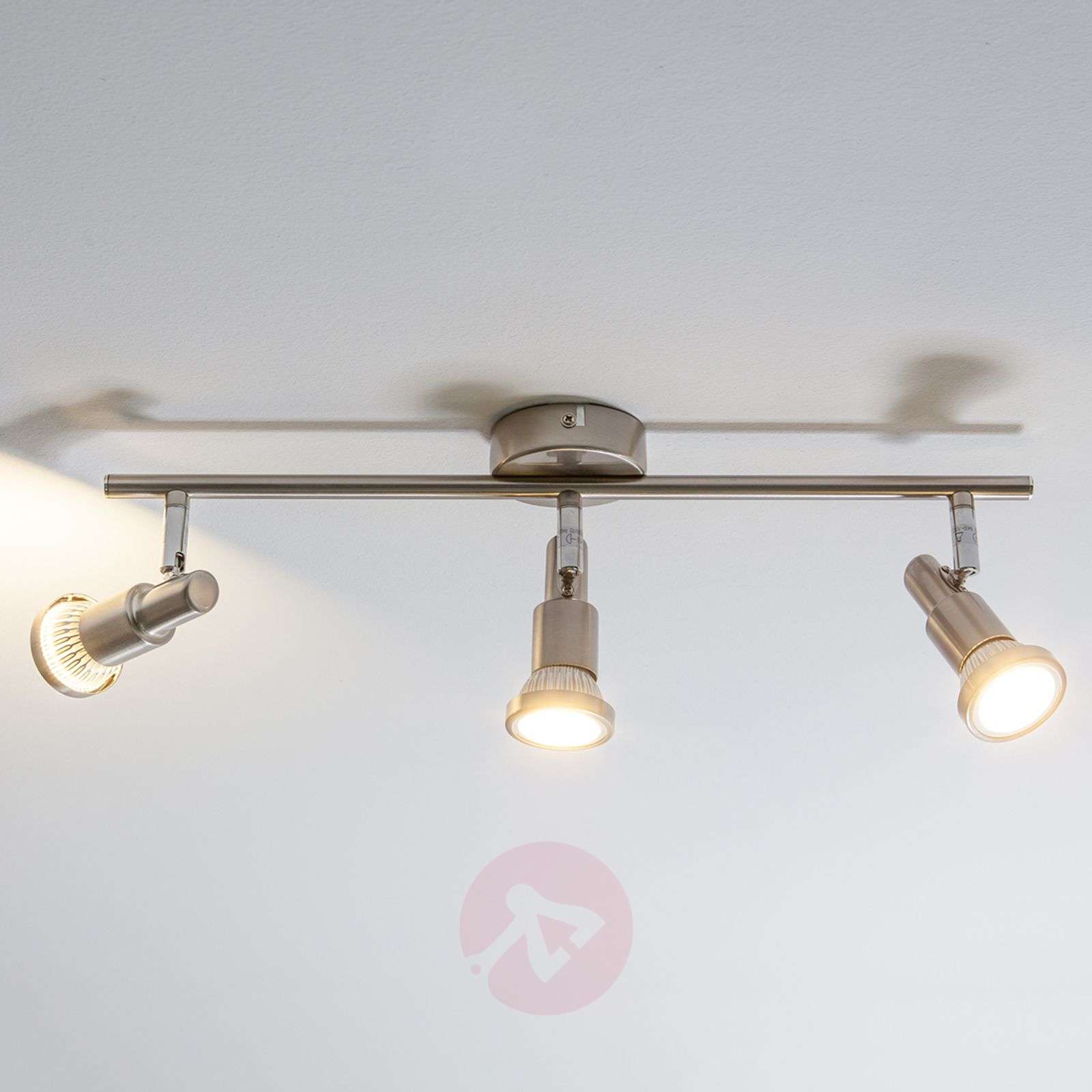 Lampa sufitowa LED ARON z niklowaną matową powierzchnią i oprawką GU10 Lampa sufitowa LED ARON łączy w sobie nowoczesne i ponadczasowe elementy, które razem tworzą harmonijną całość i nadają jej uniwersalny charakter, co pozwala na wszechstronne zastosowanie lampy. Lampa została wyposażona w żarówki LED z trzonkiem GU10, które przy temperaturze barwowej 3 000 kelwinów dają ciepłe białe światło szczególnie sprzyjające relaksowi. Okres przydatności żarówki wynosi 30 000 godzin, dlatego nie jest konieczna jej częsta wymiana. Cechy żarówek z trzonkiem GU10 (w zestawie): - niski stopień zużycia energii, energooszczędność aż do 80% - jednolite oświetlenie dzięki dużemu kątowi rozsyłania światła 90° - bardzo długi okres użytkowania do 30 000 godzin - odporna na wstrząsy - żarówka bez rtęci - czynnik wydajności: 0,5 - bez możliwości ściemniania Klasa efektywności energetycznej: A+