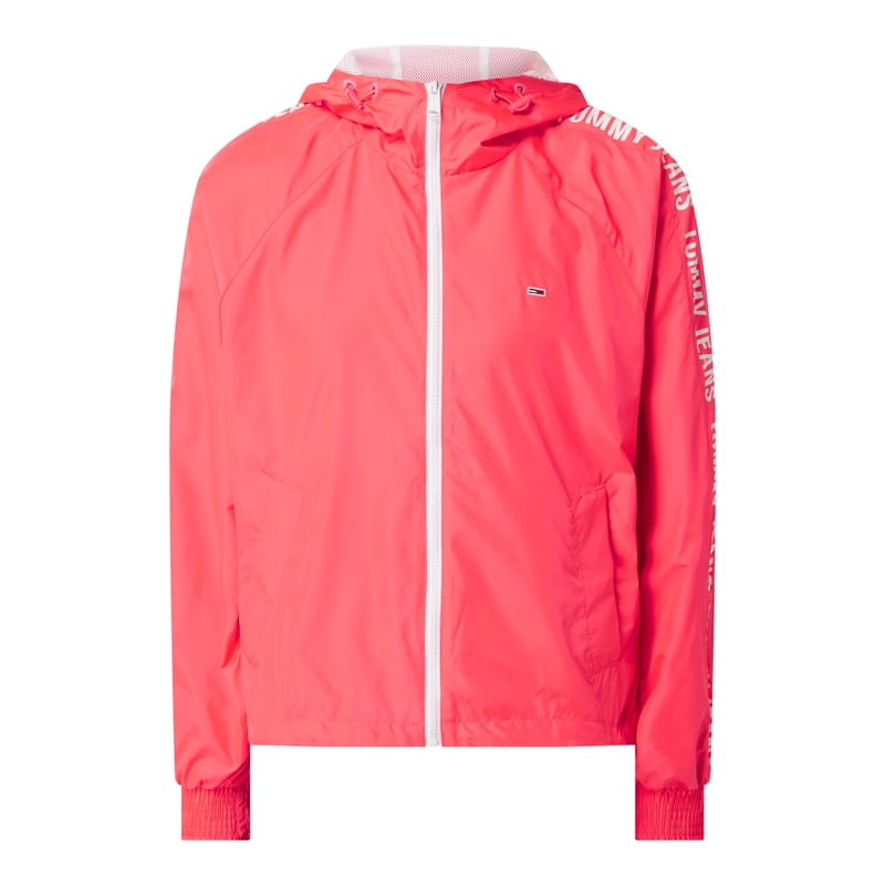 Wiatrówka damska Tommy Jeans, Poliester z recyklingu, Prosty krój, Kaptur, Raglanowe rękawy , Zamek błyskawiczny, Wpuszczane kieszenie, Pasek z logo, Elastyczne mankiety, Długość tyłu w rozmiarze S: 55 cm