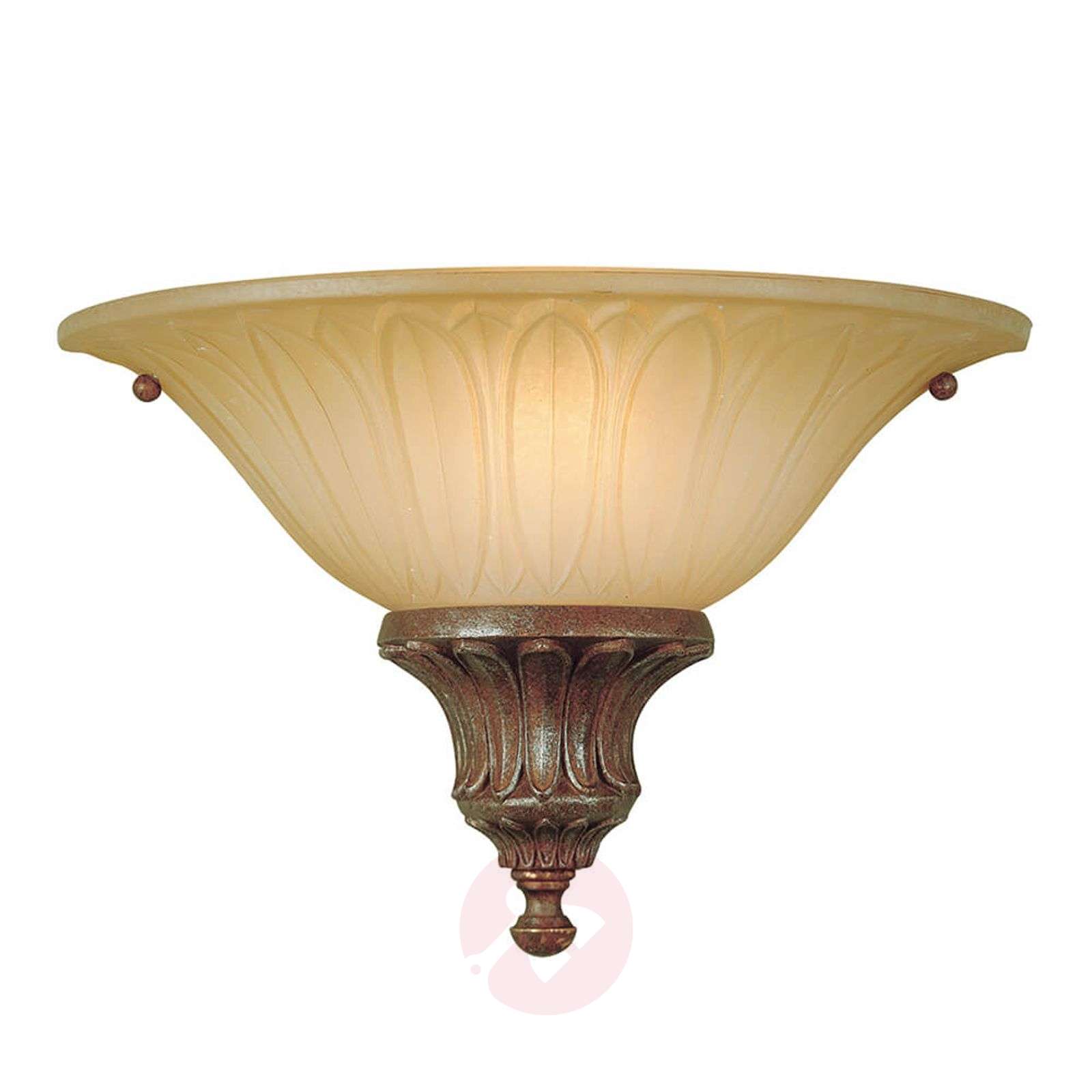 Świecąca do góry lampa ścienna Stirling Castle Lampa ścienna Stirling Castle to stylowe akcesorium oświetleniowe do wnętrza w stylu staromodnym lub rustykalnym. Uchwyt ścienny jest pięknie ozdobiony, a jego ciemnobrązowy odcień kontrastuje wyraźnie z kremowym kolorem szklanego klosza. Wzór znajdujący się na mocowaniu ściennym jest też widoczny na szklanej miseczce i czyni jeszcze bardziej miłym dla oka światło, które i tak już wygląda przytulnie i domowo z racji barwy, jaką ma szklany klosz. Stirling Castle – lampa ścienna, która podkreśla styl klasycznego wnętrza i wzbogaca każde pomieszczenie o nastrojowe oświetlenie dodatkowe. Klasa efektywności energetycznej: A++
