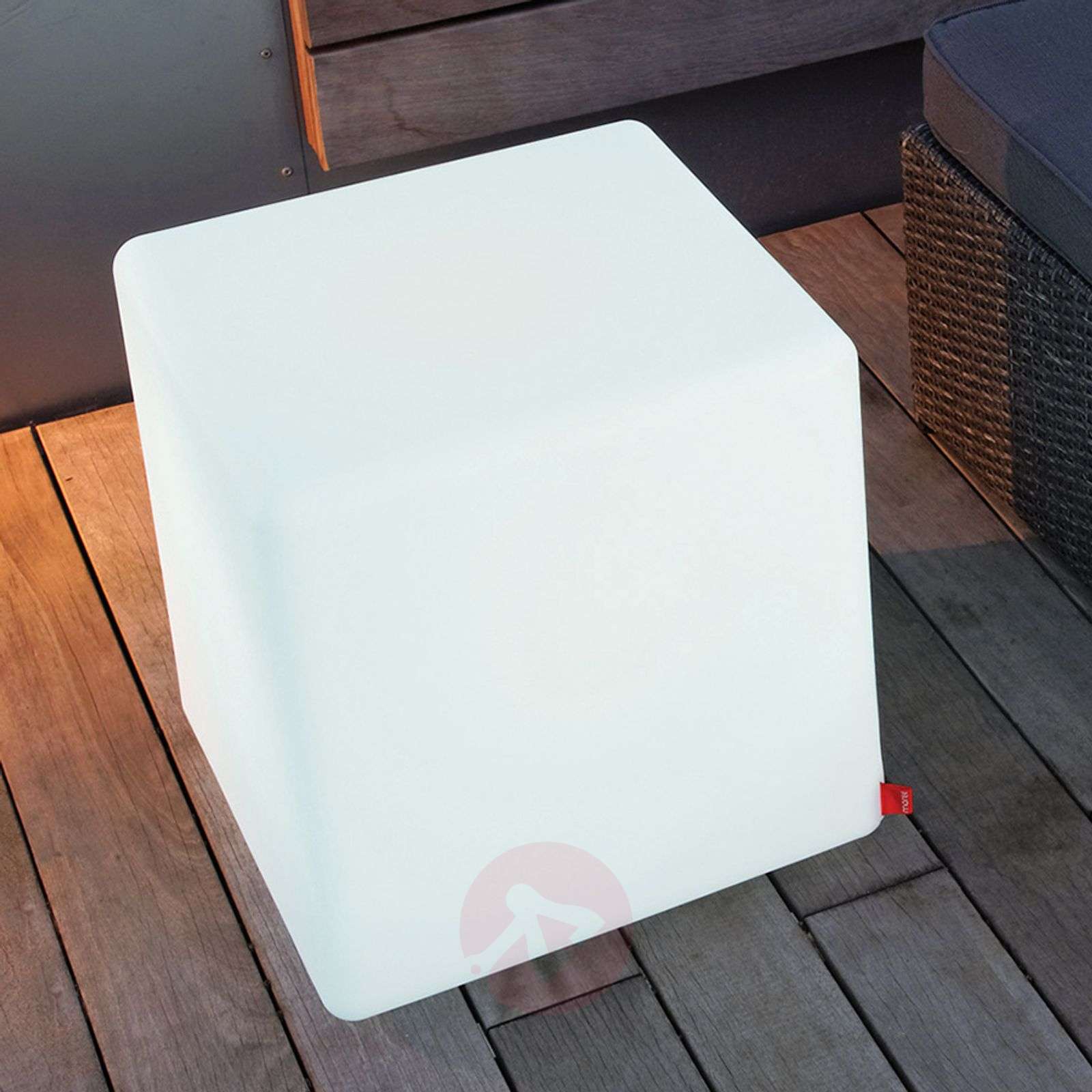 Dekoracyjna lampa zewnętrzna CUBE Outdoor - innowacyjny mebel do siedzenia, stół i obiekt dekoracyjny Dekoracyjna lampa zewnętrzna CUBE Outdoor w kształcie kostki służy wyjątkowo wszechstronnymi możliwościami zastosowania w sferze prywatnej, jak i w gastronomii: jako obiekt dekoracyjny, źródło pośredniego światła i stół, a także jako mebel do siedzenia. Wykonana z odpornego na działanie promieni UV tworzywa sztucznego lampa CUBE Outdoor posiada stopień ochrony IP44 (ochrona przed wodą rozpryskową) i dlatego doskonale nadaje się do zastosowania na zewnątrz. CUBE Outdoor jest dostarczana z czarnym kablem (5 m) i tworzy optymalny nastrój na imprezę. Klasa efektywności energetycznej: E