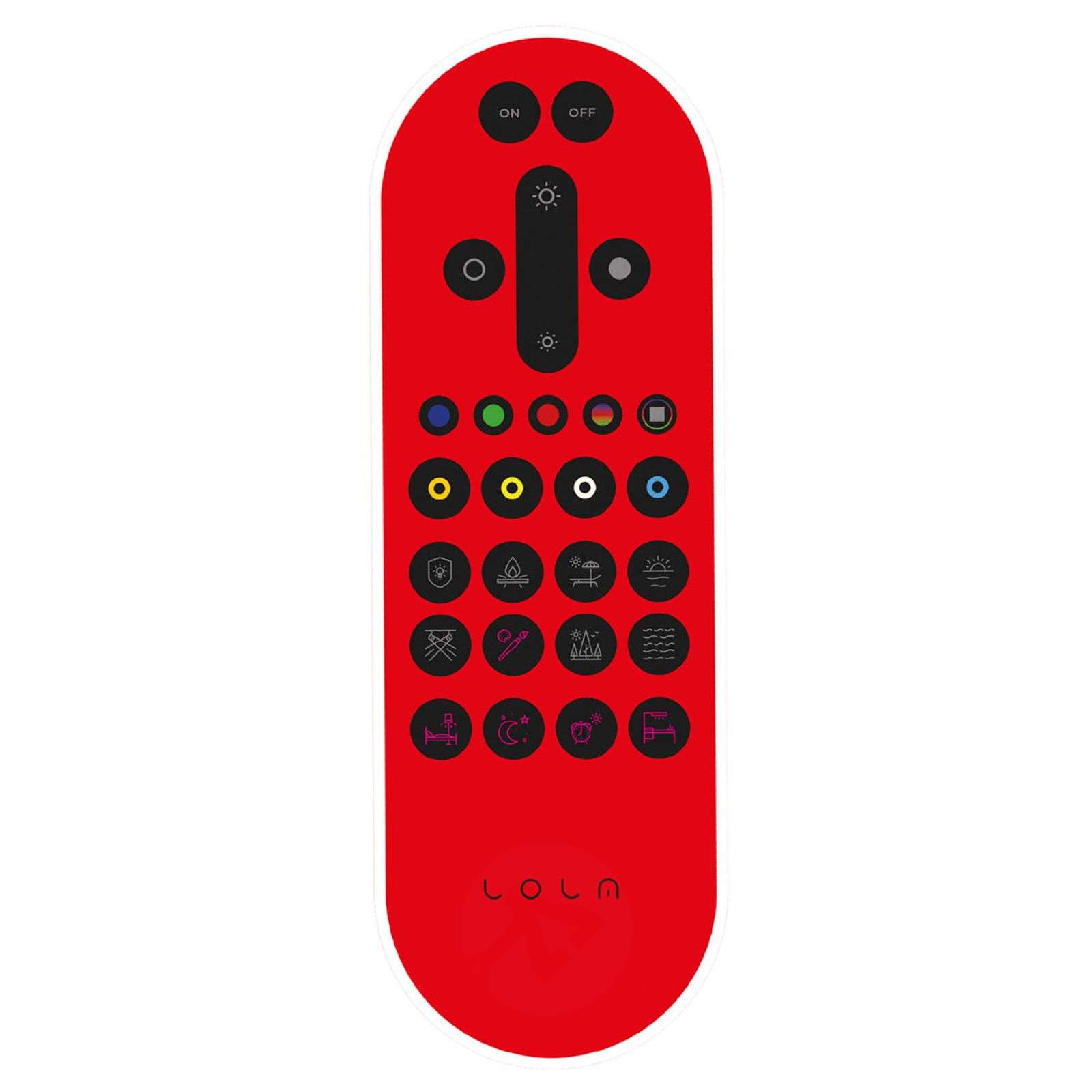 Funkcjonalny pilot do serii Lola Pilot ten pozwala na różne sposoby ustawiać lampy z serii Lola i sterować nimi, co pozwala na uzyskanie indywidualnego efektu oświetlenia. Zaczynając od różnych temperatur czy kolorów światła przez różne stopnie jasności aż po wstępnie ustawione scenerie świetlne – wszystkie te funkcje można wybierać na pilocie i dowolnie je zmieniać. Przegląd funkcji: - zachód słońca (ciepłe odcienie czerwono-pomarańczowe) - oświetlenie na przyjęcia (zmieniające się kolory światła) - ochrona przed włamaniem (automatyczne włączanie i wyłączanie lampy - ogień w kominku (migoczące światło) - spacer po lesie (świeże, nasycone odcienie zieleni tworzące atmosferę wypoczynku) - woda (turkusowo-błękitne kolory spowijają wnętrze dają wrażenie orzeźwiającego komfortu) - relaks (łagodne odcienie żółci działają odprężająco) - pobudka - kolory pastelowe - światło nocne - funkcja snu - światło robocze