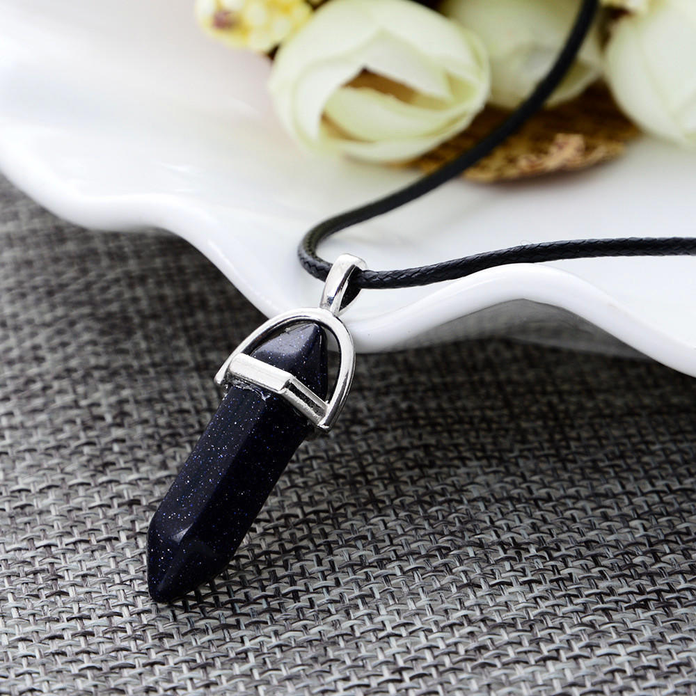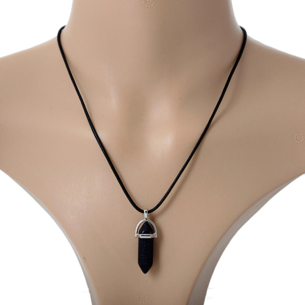 Wisiorek - kryształ kwarcowy - ciemnogranatowy