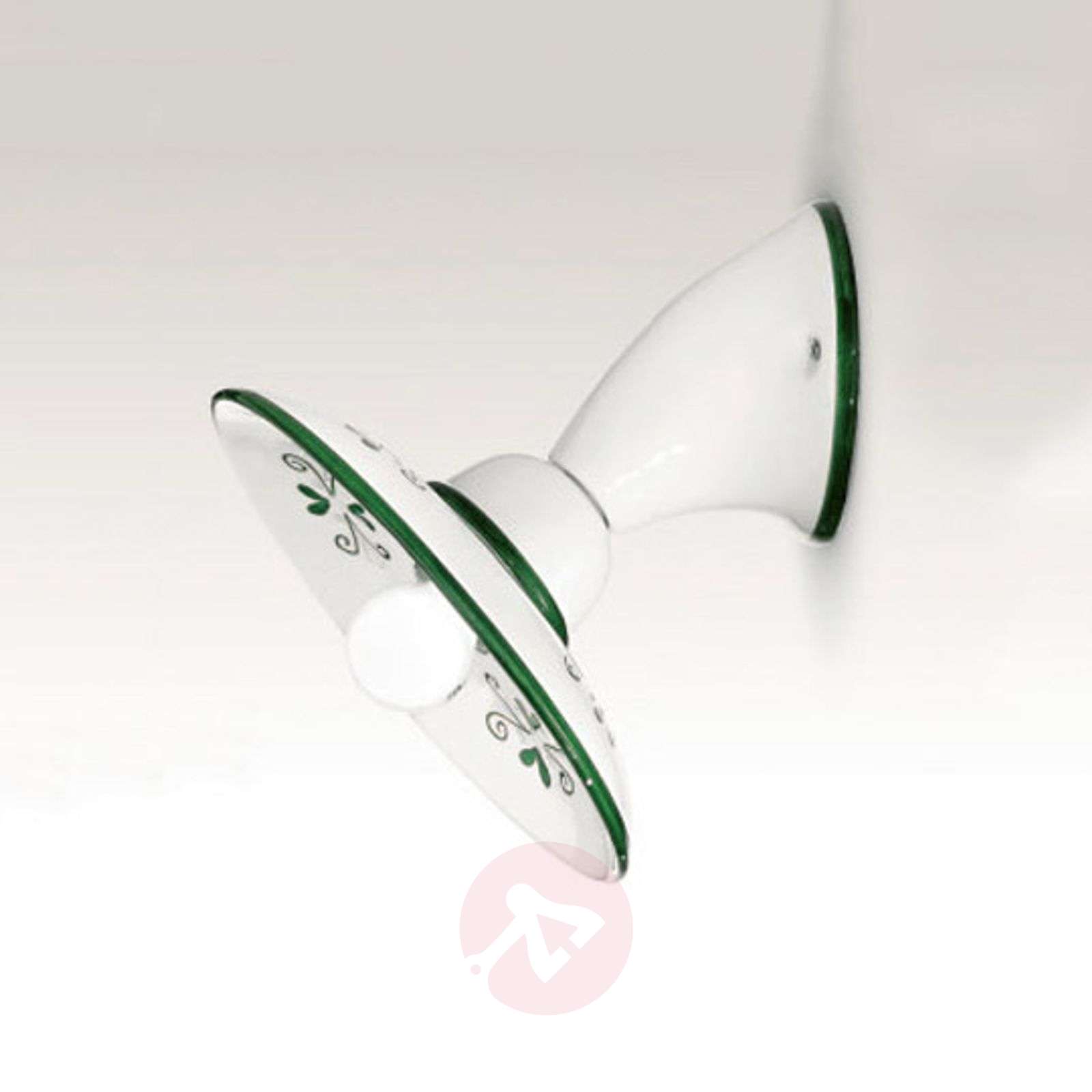 Rustykalna lampa ścienna BASSANO z ceramicznym kloszem Lampa ścienna BASSANO z lekko wygiętymi, ceramicznymi kloszami, prezentuje się rustykalnie i stylowo. Na tę estetyczną lampę ścienną, zapewniającą zarówno nastrojowe oświetlenie, jak i ozdobę oświetlanego wnętrza, składa się włoskie wzornictwo oraz najnowocześniejsze techniki produkcyjne. Rustykalny styl uzupełniony jest dekoracjami utrzymanymi w różnych odcieniach. Ceramiczny klosz jest dostępny z dekoracjami w kolorze brązowym, niebieskim i zielonym. Klasa efektywności energetycznej: A++