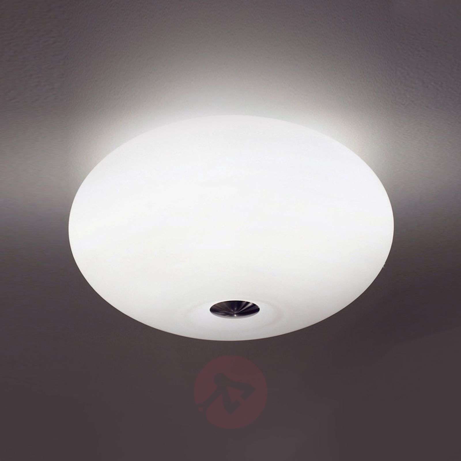 Lampa sufitowa AIH. Optymalne wymodelowanie pomieszczeń nasyconym światłem. Jakość Made in Germany! Wzornictwo AIH to ucieleśnienie prostoty, szczególnie interesujące dzięki lekkiej abstrakcji form. Lampa ta posiada kulisty, szklany klosz - zgodnie z tradycją dmuchany ustnie. Nawet jednak tak prosty kształt może być - jak się okazuje - uatrakcyjnieniem pomieszczenia. Unikalne jest tutaj lekkie wygięcie do wnętrza, znajdujące się w centrum klosza lampy. Zabarwienie środka lampy na kolor czarny jest jej dodatkowym, interesującym szczegółem, zaś zastosowanie matowego niklu w elementach konstrukcji zapewnia dodatek kolejnego wysokiej jakości materiału. Zastosowanie dwóch żarówek zamiast jednej wyklucza oślepianie, dzięki czemu rzucane cienie nie zakłócają nasyconego blasku emitowanego przez klosz a sama lampa jest idealnym elementem modelującym wnętrze. Klasa efektywności energetycznej: A++