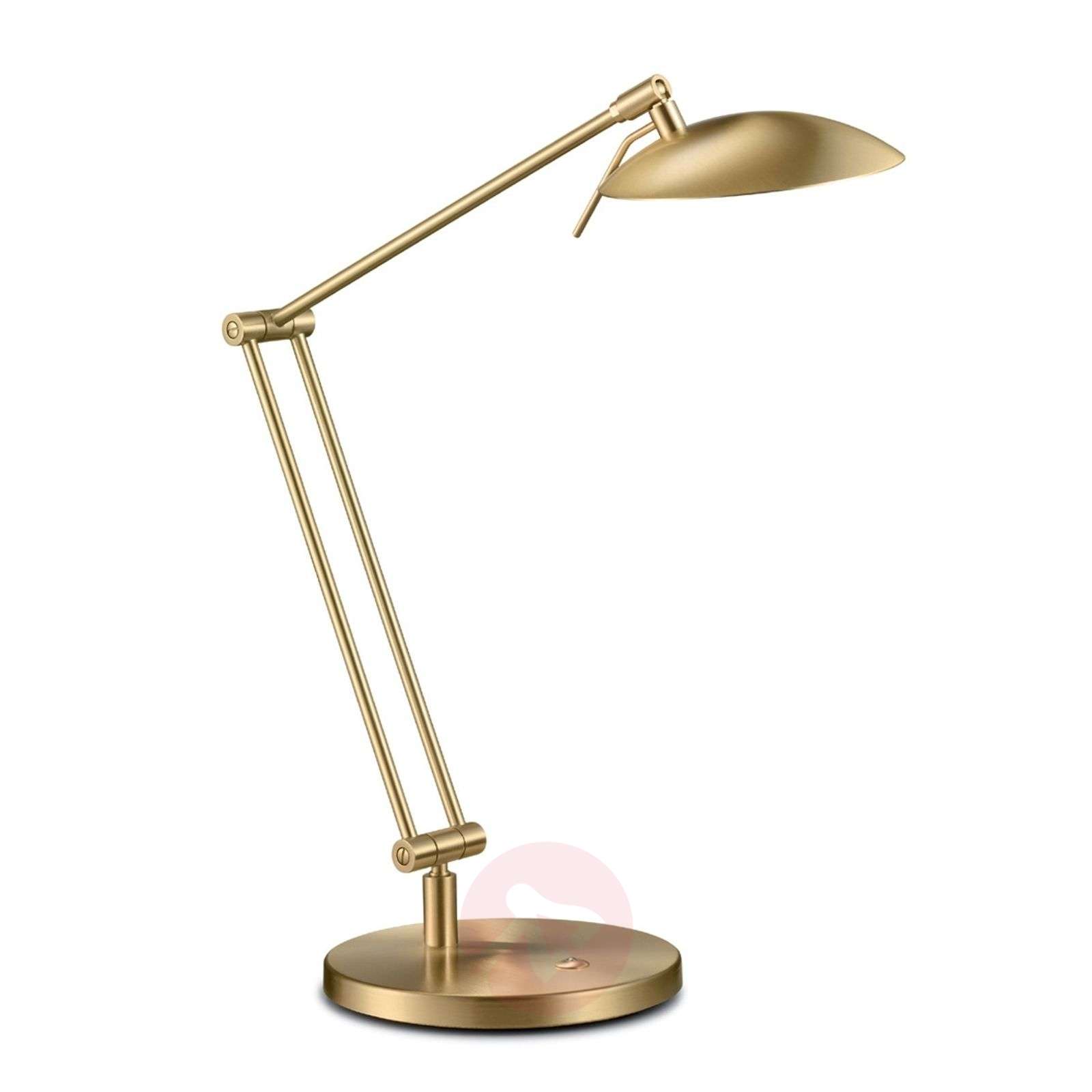 Elastycznie regulowana lampa biurkowa LED COIRA Lampa biurkowa LED Coira ma niezwykle dużo zalet: jako pierwszą z nich należy wymienić żarówkę energooszczędną LED, która zapewnia jasne światło przez wiele godzin. Jako kolejną z nich podkreślić trzeba niezwykłą elastyczność lampy biurkowej LED Coira, ponieważ jest ona nie tylko uchylna w miejscach zaopatrzonych w przeguby, lecz także można ją tutaj przekręcać, zapewniając perfekcyjne oświetlenie nawet w najgłębiej ukrytych zakamarkach. A jeśli mamy życzenie stworzyć nieco bardziej nastrojową atmosferę, wówczas bez problemu można zmniejszyć intensywność światła za pomocą dotykowego ściemniacza. Kolejną i z pewnością nie ostatnią zaletę lampy biurkowej LED Coira stanowi jej elegancki, nowoczesny wygląd, podkreślany przez jednolitą metalową strukturę w pięknym kolorze matowego mosiądzu. Knapstein to wizytówka klasycznej jakości MADE IN GERMANY. Firma nie oferuje towarów importowanych z Dalekiego Wschodu czy też innych krajów. Klasa efektywności energetycznej: A+