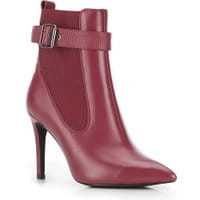 Wsuwane botki na szpilce Czarne lub bordowe botki damskie,uszyte ręcznie ze skóry naturalnej o subtelnym połysku. Elastyczne wstawki o potencjale estetycznym mają przede wszystkim służyć jako ułatwienie podczas wkładania i zdejmowania modelu. Na przedłużonej za kostkę cholewce został wyeksponowany skórzany pasek zapinany na grafitową sprzączkę. Ostro zakończony nosek stanowi idealne uzupełnienie eleganckiej estetyki.Nasza rada:wybieraj między dwoma odcieniami czarnym lub bordowym. wykonane w technologii "hand made" z najlepszych skór; podeszwa wykonana w całości z materiału syntetycznego; przybliżona wysokość obcasa: 10,5cm.