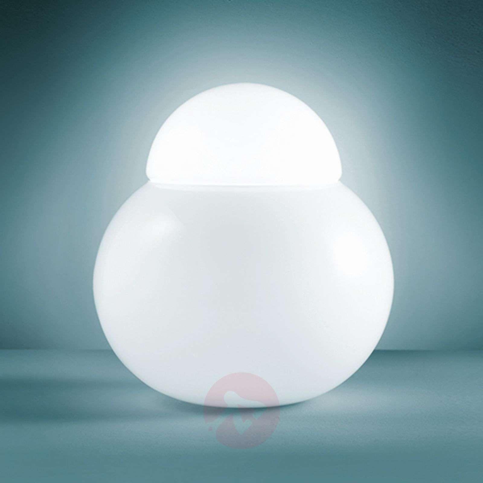 Ponadczasowa piękna klasyka wzornictwa firmy Fontana Arte Kula y białego dmuchanego szkła i nałożona na nią półkula z tego samego materiału - to prosty kształt, który jednak nie traci nic ze swojego oddziaływania. Ta lampa stołowa zaprojektowana przez Sergio Asti, bryluje dzięki łagodnemu światłu i jest znacznie czymś więcej niż elementem oświetleniowym. Ponieważ ta lampa jest dostępna w 6 wielkościach, bardzo dobrą możliwość stanowi połączenie różnych wielkości lub też lamp tej samej wielkości, co umożliwia kreowanie całkowicie indywidualnych aranżacji świetlnych. Klasa efektywności energetycznej: A++