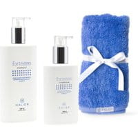 Szampon Fortesse przyspiesza wzrost włosów i zapobiega ich wypadaniu. Dokładnie myje i wzmacnia pasma, chroniąc końcówki przed rozdwajaniem. Zawiera unikalną formułę Advanced Hair Booster™, która odżywia cebulki, poprawia elastyczność włosów oraz regeneruje skórę głowy. Szampon nie zawiera detergentów SLS i SLES. Został przebadany dermatologicznie.Odżywka Fortesse z formułą Hair Vitality Complex™ to produkt dla kobiet. Dzięki niej włosy nie elektryzują się, są odżywione i podatne na układanie. Ich wzrost jest przyspieszony, a wypadanie ograniczone. Kosmetyk nie obciąża pasm, dlatego możesz nakładać go bezpośrednio na skórę głowy. Produkt został przebadany dermatologicznie. Zestaw Halier uzupełnia turban do włosów wykonany ze 100% bawełny. To doskonały gadżet, który świetnie sprawdzi się podczas codziennej pielęgnacji oraz podróży.
