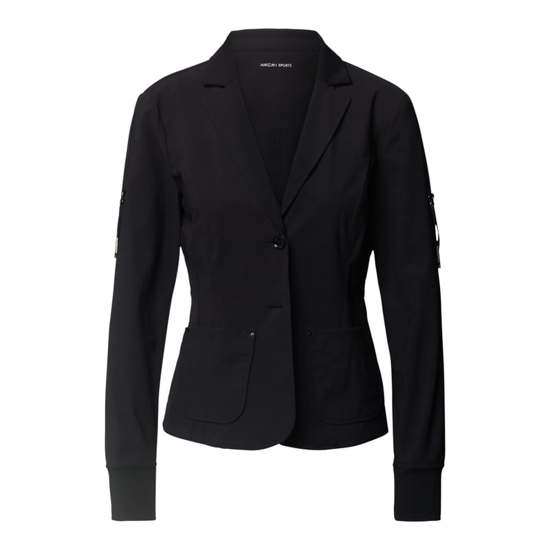 Żakiet damski Marc Cain, Wytrzymały materiał, Zaznaczona talia, Kołnierz z połami, Listwa guzikowa z 2 guzikami, Nakładane kieszenie, Aplikacje z metką, Zakończenia rękawów z prążkowanego ściągacza, Długość tyłu w rozmiarze 36: 55 cm, Szerokość klatki piersiowej w rozmiarze 36: 45 cm, Długość rękawa w rozmiarze 36: 60 cm