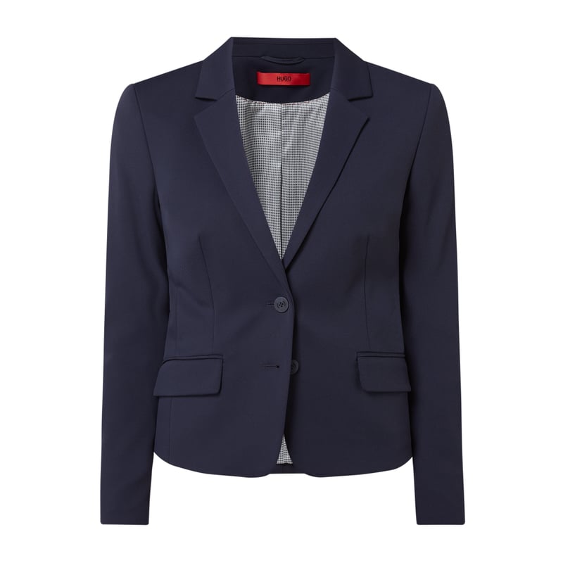 Żakiet damski HUGO, Mieszanka materiałów z dodatkiem streczu , Taliowany krój , Kołnierz z połami, Listwa guzikowa z 2 guzikami , Rękawy z rozcięciami , Kieszenie z wypustkami i patką, Lekka podszewka , Długość tyłu w rozmiarze 36: 56 cm, Szerokość ramion w rozmiarze 36: 39 cm, Długość rękawa w rozmiarze 36: 63 cm