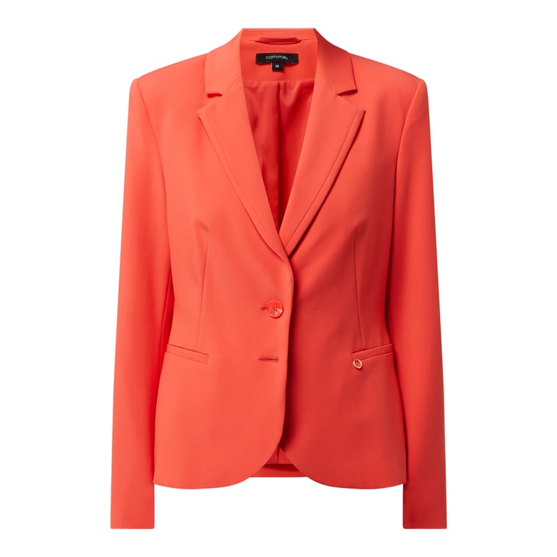 Żakiet damski comma, Mieszanka wiskozy i elastanu, Taliowany krój, Kołnierz z połami, Listwa guzikowa z 2 guzikami, Kieszenie z wypustkami, Długość tyłu w rozmiarze 36: 56 cm, Szerokość ramion w rozmiarze 36: 38 cm, Długość rękawa w rozmiarze 36: 62 cm