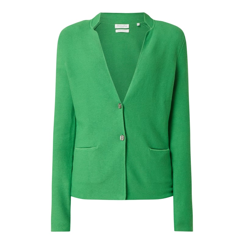 Żakiet z dzianiny damski Christian Berg Women , Czysta bawełna, Taliowany krój , Drobno prążkowana faktura , Kołnierz rewersowy ułożony do wewnątrz , Listwa guzikowa z 2 guzikami , Wpuszczane kieszenie , Długość tyłu w rozmiarze 36: 63 cm , Szerokość ramion w rozmiarze 36: 39 cm , Długość rękawa w rozmiarze 36: 67 cm