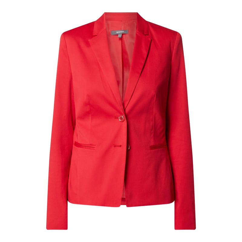 Żakiet damski MONTEGO , Mieszanka bawełny i elastanu , Taliowany krój , Kołnierz rewersowy , Listwa guzikowa z 2 guzikami , Kieszenie z wypustkami , Zakończenia rękawów z ozdobnym guzikiem , Długość tyłu w rozmiarze 36: 60 cm , Szerokość ramion w rozmiarze 36: 37 cm, Długość rękawa w rozmiarze 36: 62 cm