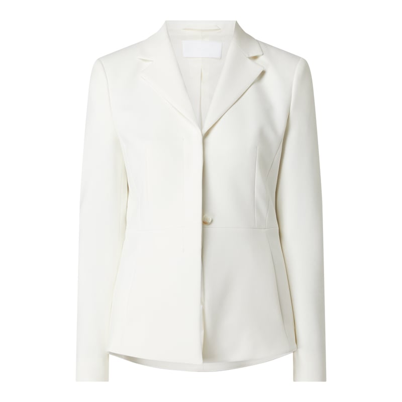 Żakiet damski BOSS, Mieszanka materiałów z dodatkiem wiskozy i streczu , Taliowany krój , Kołnierz z połami, Listwa guzikowa z 2 guzikami , Wpuszczane kieszenie , Baskinka, Długość tyłu w rozmiarze 36: 60 cm, Szerokość ramion w rozmiarze 36: 38 cm, Długość rękawa w rozmiarze 36: 59 cm