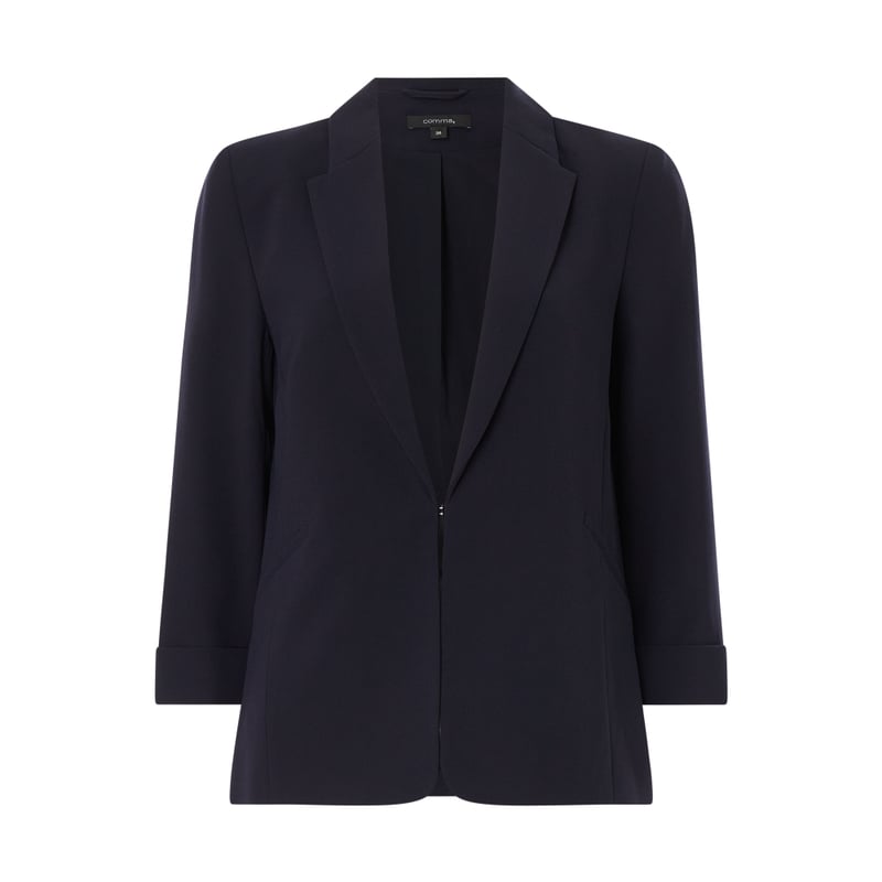 Żakiet damski comma, Materiał o drobnej fakturze , Taliowany krój , Kołnierz z połami, Zapięcie na haftkę , Kieszenie z wypustkami, Regulowane rękawy o dł. 3/4 , Długość tyłu w rozmiarze 36: 61 cm, Szerokość ramion w rozmiarze 36: 38 cm
