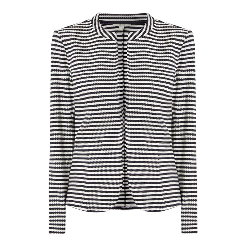 Żakiet damski Esprit , Bawełna ekologiczna i elastan , Taliowany krój , Wzór w paski , Stójka , Zapięcie na haftkę, Kieszenie z wypustkami , Długość tyłu w rozmiarze S: 59 cm , Szerokość ramion w rozmiarze S: 40 cm , Długość rękawa w rozmiarze S: 62,5 cm