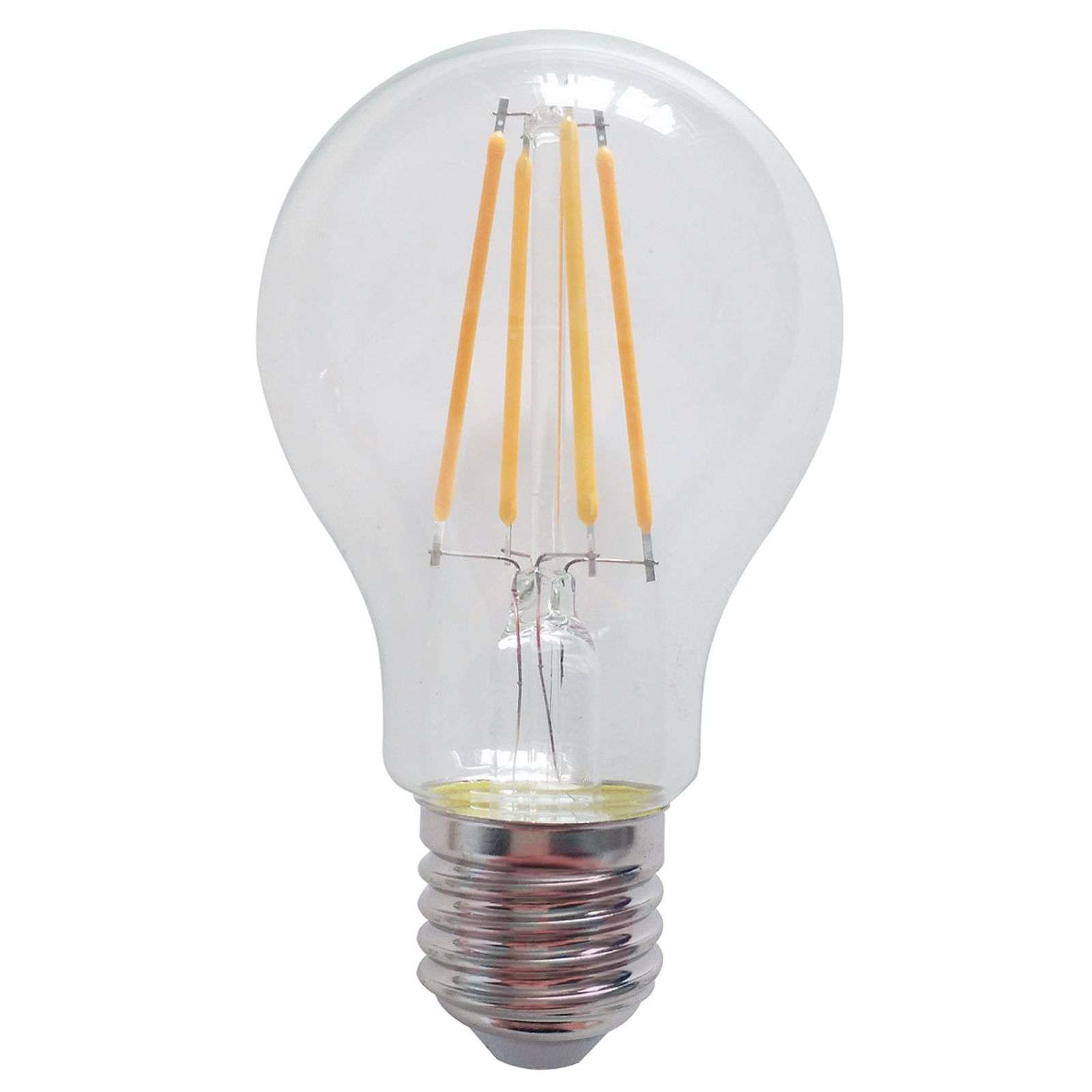 Inteligentna żarówka LED E27 7W 2700K Ta żarówka LED E27 może być zintegrowana z siecią WLAN, a tym samym z systemem sterowania oświetleniem poprzez aplikację. Ponadto współpracuje także ze sterownikami głosowymi Amazon Echo i Google home. Światłem tej żarówki LED można sterować za pomocą smartfonu lub tabletu. Warunkiem jest posiadanie bezpłatnej aplikacji KAFO dla systemów iOS i Android. Aplikacja służy nie tylko do włączania i wyłączania żarówki, zapewnia także możliwość ściemniania, sterowania czasowego, grupowania żarówek lub dołączania ich do już istniejącej grupy. Dane techniczne/Kompatybilność: - klasa efektywności energetycznej A+ - wbudowany sterownik - WiFi 2,4 GHz - kompatybilność z Amazon Echo i Google Home. - aplikacja KAFO dostępna dla systemów iOS i Android - wartość porównawcza: 32 W lampa halogenowa - czas świecenia: do 25 000 godzin - możliwość ściemniania Cechy szczególne/kompatybilność Aplikacja KAFO może być używana do sterowania oświetleniem z poziomu tabletu lub smartfona. Oprócz włączania i wyłączania oraz zmiany barw światła z ciepłej bieli, można tu także płynnie zmniejszać jasność. Kilka źródeł światła WiFi można połączyć w różne grupy i sterować nimi synchronicznie. Światłem można sterować także czasowo. Dodatkowo żarówka jest kompatybilna z Amazon Echo i Google Home, za pośrednictwem tych dwóch systemów możliwe jest także sterowanie głosowe. Klasa efektywności energetycznej: A+