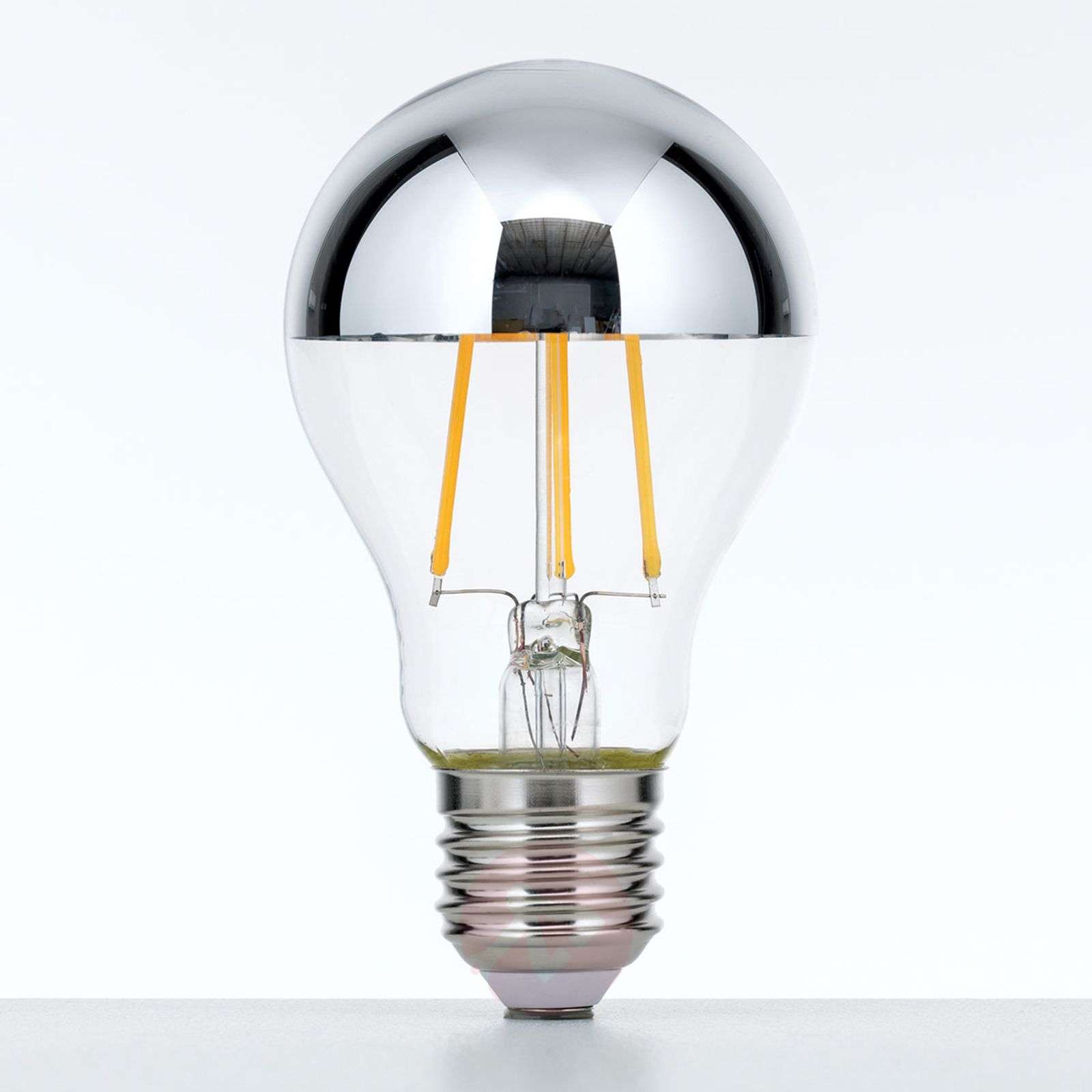 Żarówka lustrzana LED E27 7 W, ciepła biel, ściemniana Ta ściemniana żarówka lustrzana LED ciepłobiałe światło o temperaturze barwowej 2 700 K, nie powodujące efektu oślepienia, które dzięki lustrzanej powierzchni emitowane jest tylko w kierunku oprawy i na boki przez lustro. Dzięki temu też doskonale nadaje się do lamp otwartych, w których źródło światła jest widoczne z zewnątrz. Właściwości / Dane techniczne: - klasa efektywności energetycznej: A+ - możliwość ściemniania Klasa efektywności energetycznej: A+