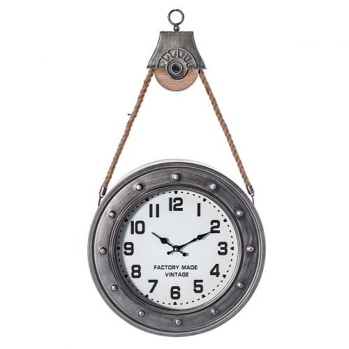 Efektowny zegar ścienny o oryginalnym designie. Idealnie podkreśli charakter wnętrz w stylu loftowym czy industrialnym.Tarcza w kolorze białym zegara znajduje się za szybą. Obręcz zegara wykonana z metalu w kolorze szarym. Niebanalny i oryginalny pomysł na prezent.Obok takiego zegara nikt nie przejdzie obojętnie.Bez względu gdzie zawiśnie na pewno zmieni oblicze wnętrza. Wymiary: śr. tarczy 40cm, gł. 6cm.