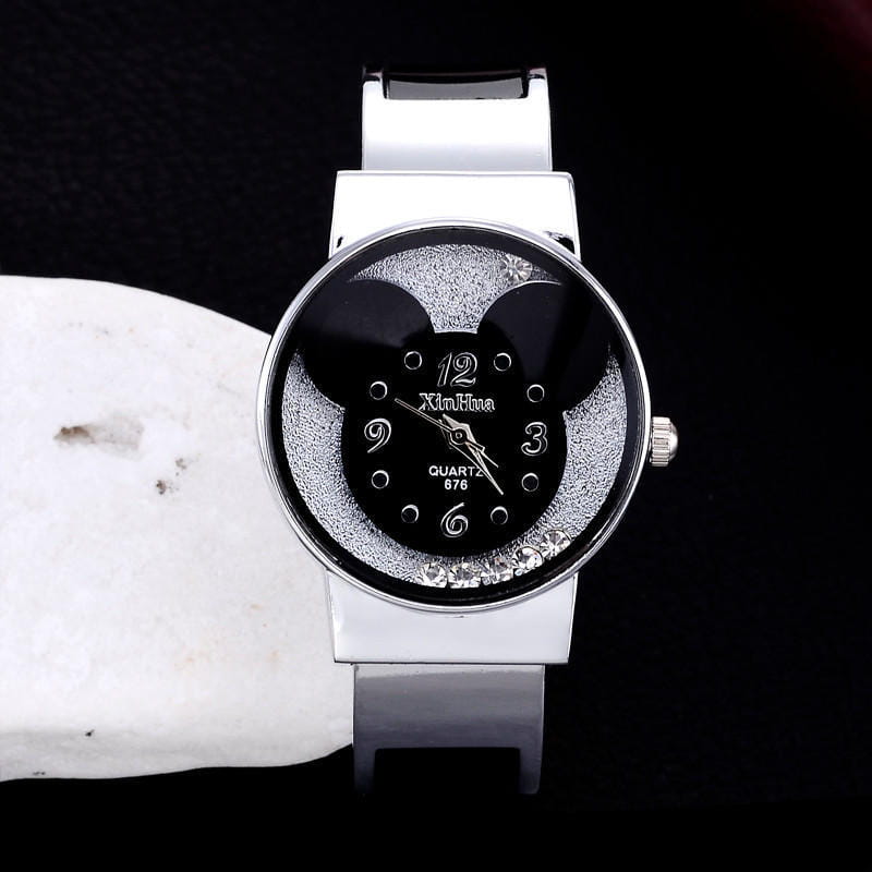 Zegarek Myszka Miki - kwarc -Damski - Luxury - czarno -srebrny