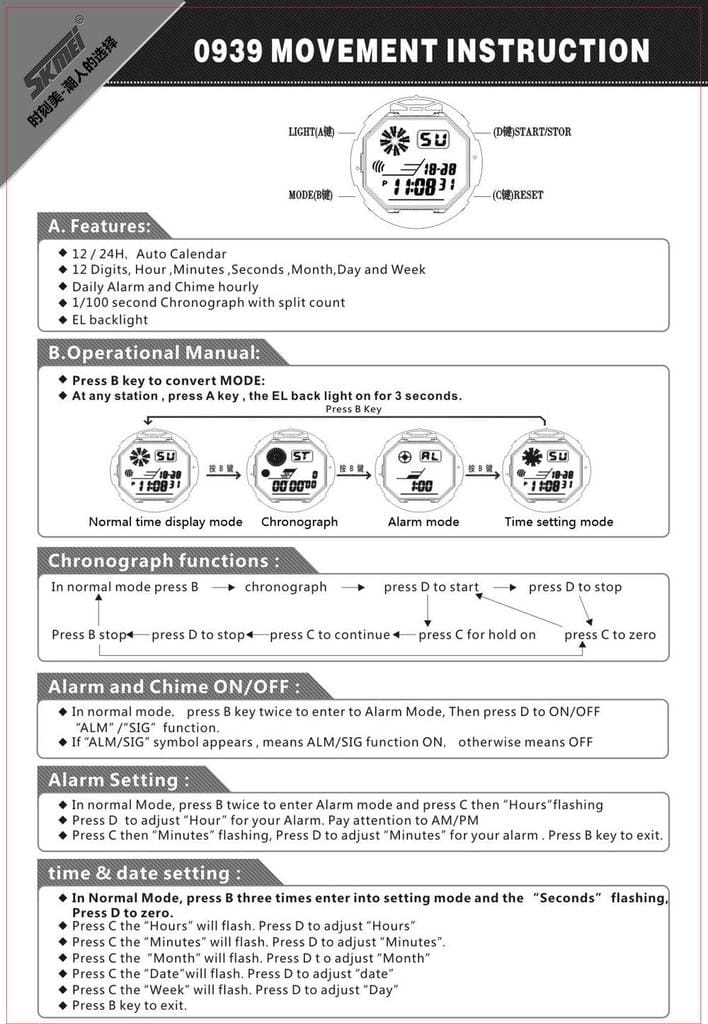 Typu: cyfrowy zegarek zegarek/sport